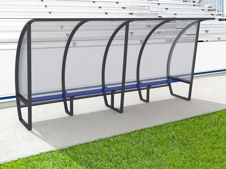 Ghế BHL khung nhôm dài 4m cho 8 người, băng ngồi hộp nhôm mái polycarbonate, mặt hông veralite