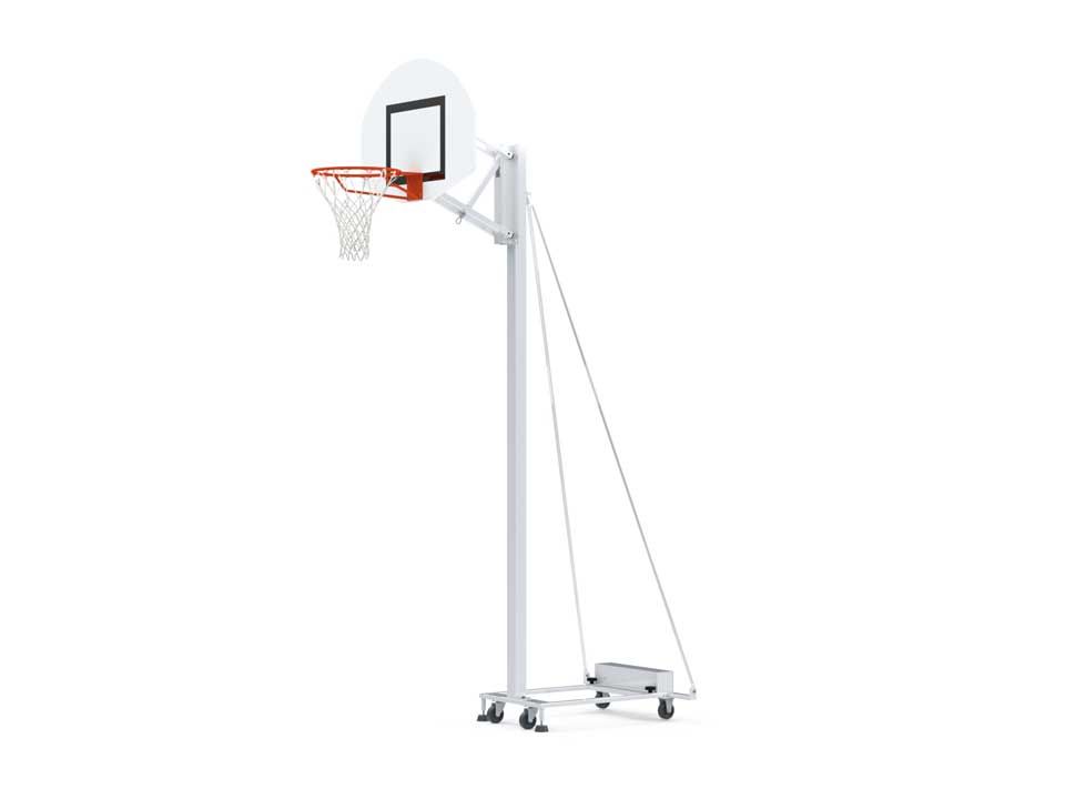 | Trụ bóng rổ trường học, chiều cao vành rổ điều chỉnh bằng tay quay 2.6-3.05m, bảng composite hình quạt 1120x775mm, vành rổ tiêu chuẩn ĐK 450mm, đối trọng 38kg, kèm lưới |